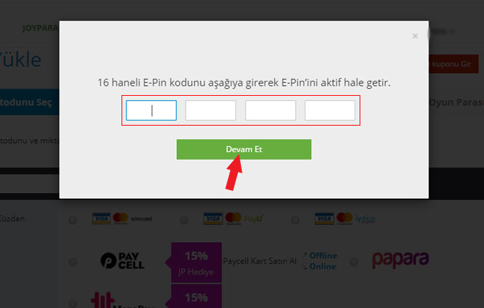 Oyunfor.com'dan satın almış olduğunuz kodu girerek "Devam Et" butonuna tıklayınız.