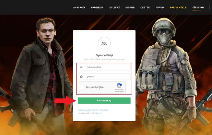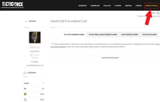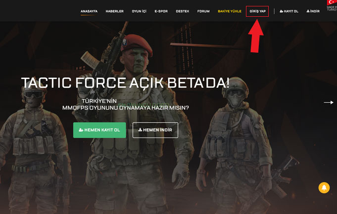 https://www.tacticforce.com/ sayfasından "Giriş Yap" sekmesine tıklayınız.