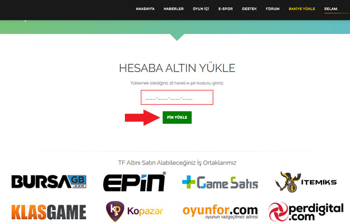 Oyunfor.com'dan almış olduğunuz kodu girerek "Pin Yükle" butonuna tıklayınız.