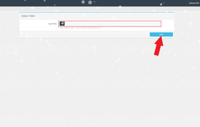 2.ADIM Bakiye yükleme böümüne Oyunfor.com'dan satın almış olduğunuz kodu girerek "Yükle" butonuna tıklayınız.