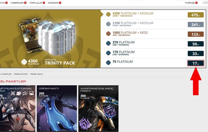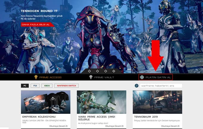 https://www.warframe.com/tr adresinden üye girişi yapınız.Ardındaın "Platin Satın Al"a tıklayınız.