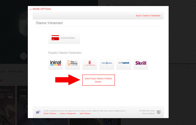 "Daha Fazla Ödeme Yöntemi Göster"a tıklayınız.